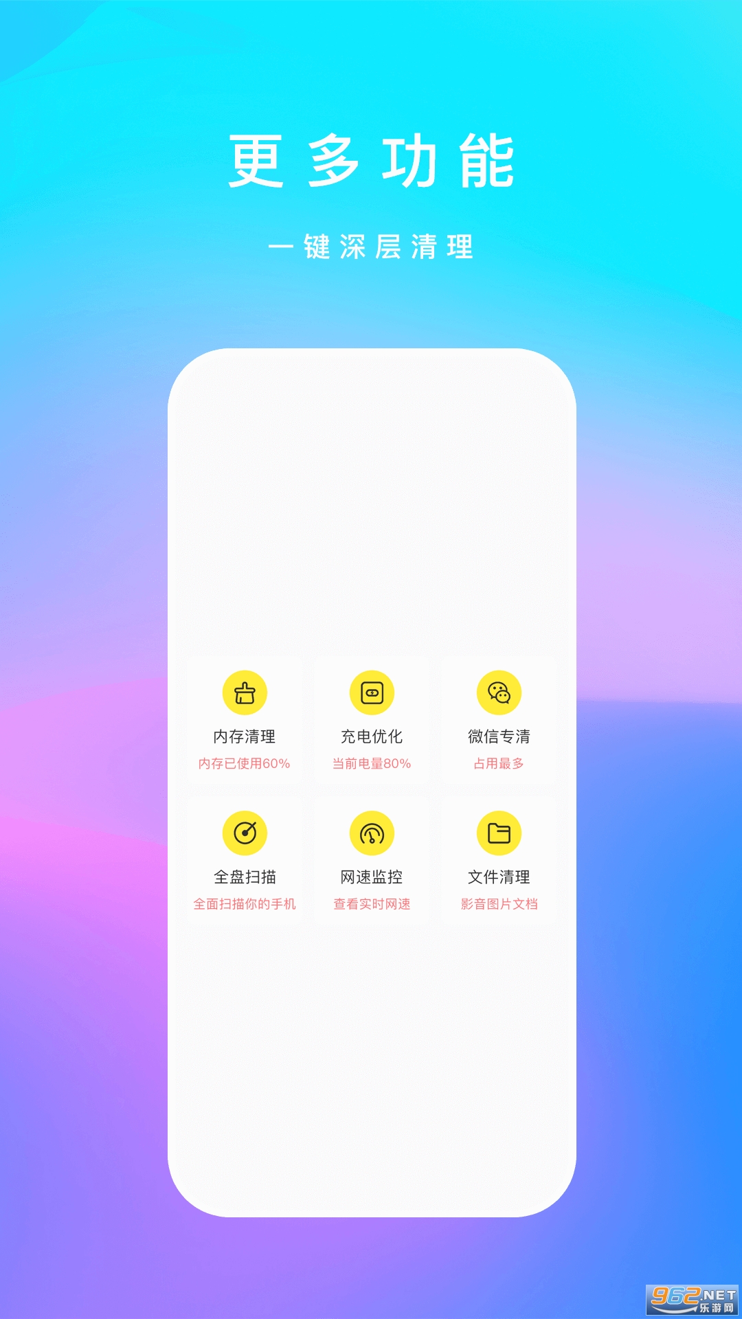 内存清理君解决所有存储不足的问题,有效解决手机使用过程中的一切卡顿、耗电、内存不足等问题,是你的贴心手机管家。