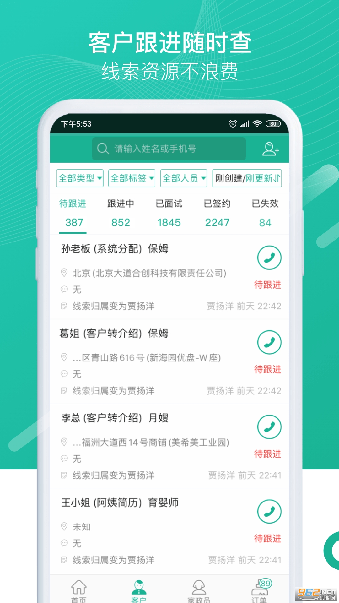 3.在线管理客户,随时录入客户跟进记录,以及客户资料。