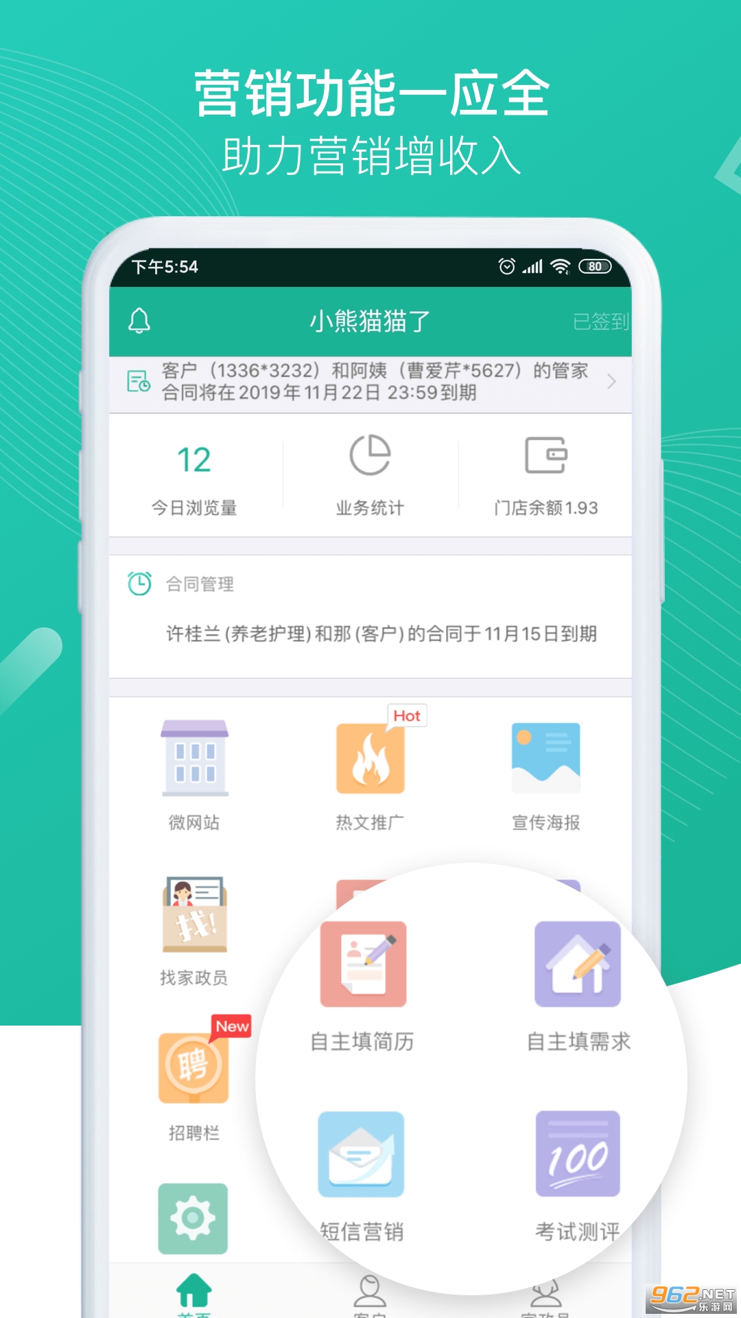 5.支持添加合同,查看到期合同等功能。让家政老师随时随地签合同。