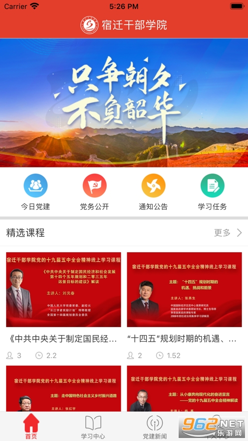 宿迁干部学院app最新版是宿迁干部和党员的手机学习平台,软件同步了宿迁干部学院官网的课程资源,干部培训积极参与学习党建知识宣传党员风采展示等一站式服务,手机学习线上课堂,智能党校。
