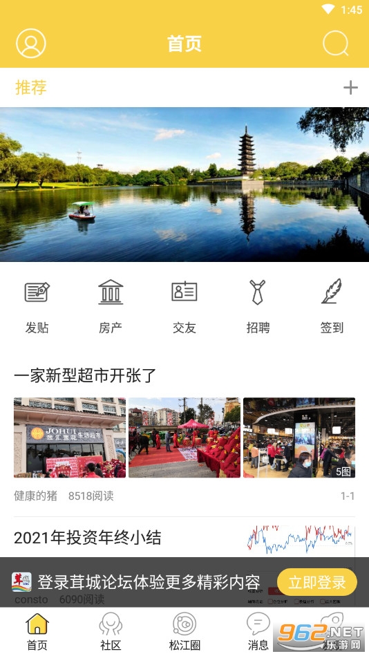《松江茸城论坛》是茸城论坛的手机app版本。用户可以通过这款app在手机上流畅快捷的使用茸城论坛的各项功能。你可以在这里了解最新的本地资讯,还有着超多不同的版块等你探索,结交更多的本地朋友。