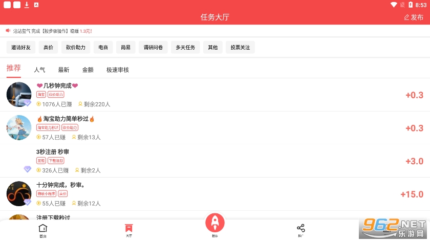 1、让用户自己可以挑选可以进行接取的订单内容,依据对方的要求完成之后就可以进行完成求助获取奖励,体验更加有趣的生活乐趣。