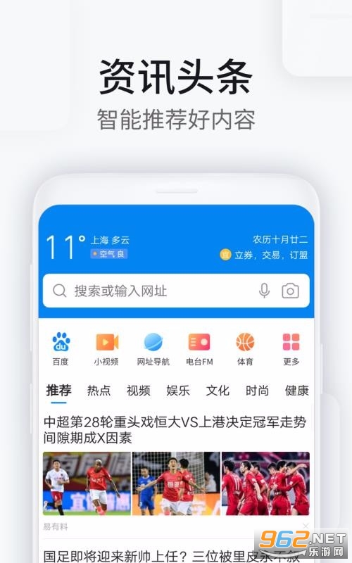 3、展示常用的多个导航专区图标,比如体育、电台、网址导航以及百度等;