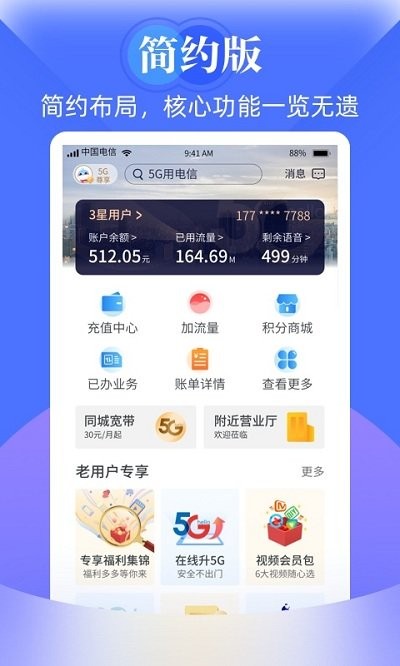 4.专业宽带服务,全面支持免费提速、一键续约、网络测速、免费体验电信百兆宽带,让你足不出户享受宽带服务