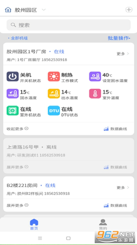 查看运行曲线,查看设备报警,运行数据报表,远程操控,设备视频监控。