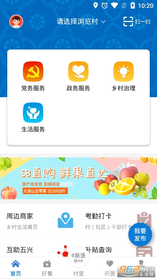 《e路通app官方版》是益阳五八农业服务科技有限推出的一款湘西综合服务平台,e路通app有着党务服务、政务服务、乡村治理、生活服务等众多的服务,可以在软件中查看湘西地区的新闻资讯,还有着问答栏目,可以提各种问题,和其他人进行交流。