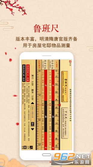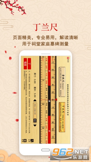 2.尺子选择:可自由切换“鲁班尺”与“丁兰尺”,鲁班尺又称“文公尺”,用于房屋宅邸、器具物品的尺寸测量,丁兰尺多用于祖龕阴宅的尺寸测量。