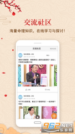 5.交流社区:多种易学命理测算一应俱全,命理大师在线与用户交流风水文化。