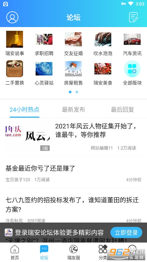 每日热点,个性关注,尽在瑞安论坛
