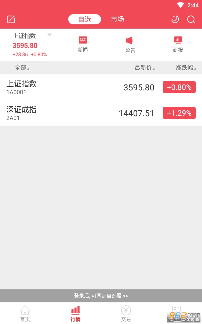 4、自选股票:用户关注的股票、基金、债券、指数、权证等均可以加入自选股票池中。