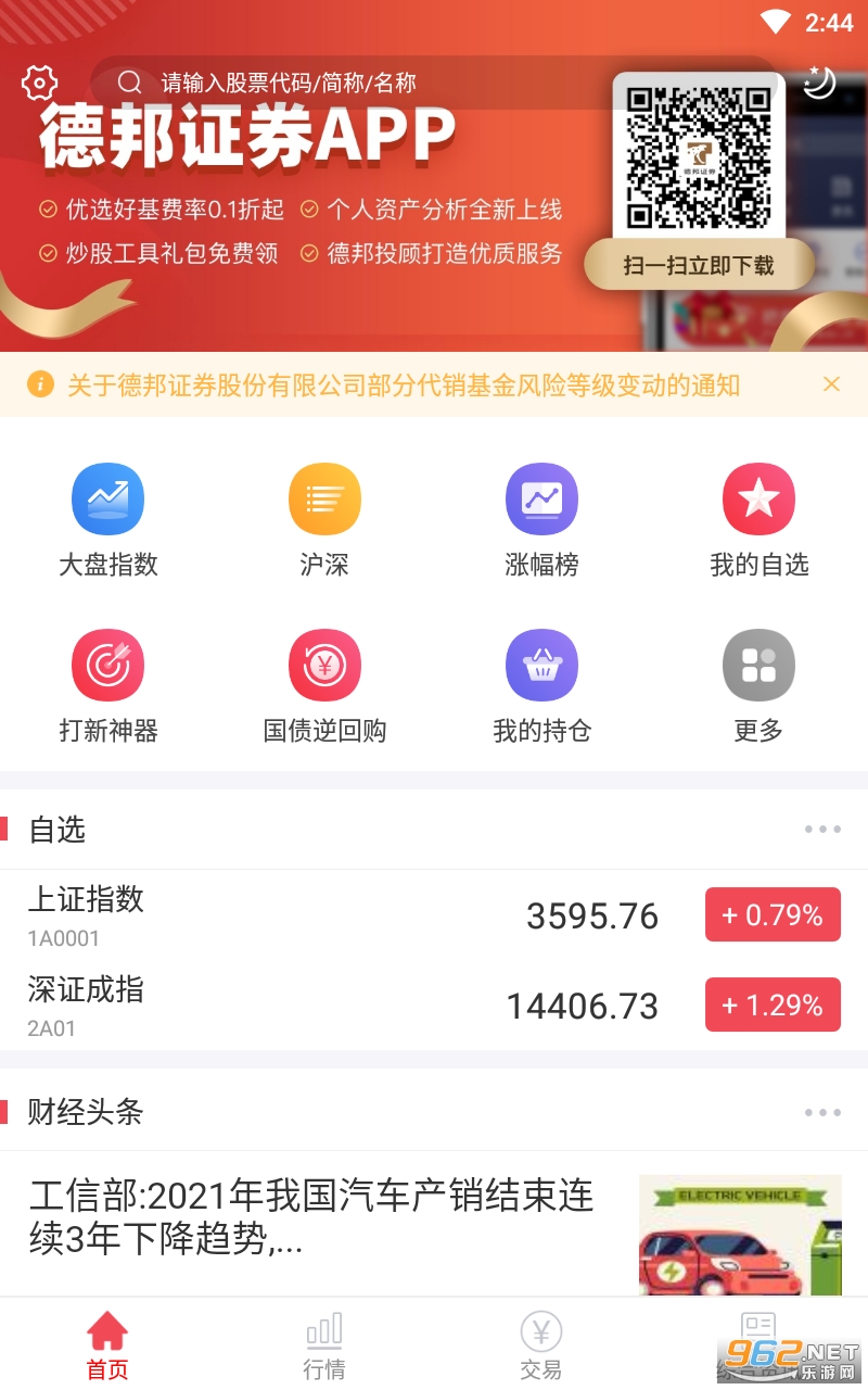 2、指数板块:提供沪深两市各类指数的实时行情,为投资者提供揭示直观的市场情况。