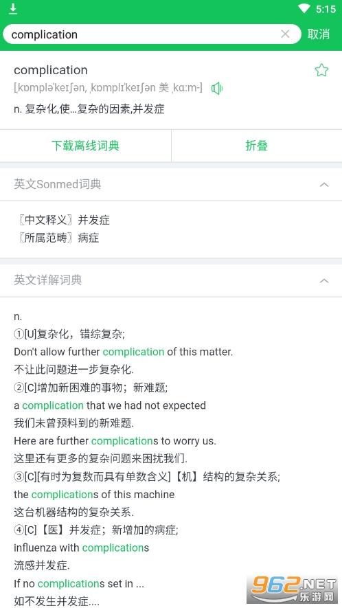 1.词汇查询:安卓版词典内置英汉简明医学词典,汉英简明医学词典,英汉通用词典和汉英通用词典共四本词典,总词汇量约300万条;可满足医学专业人员学术工作中的基本需求。