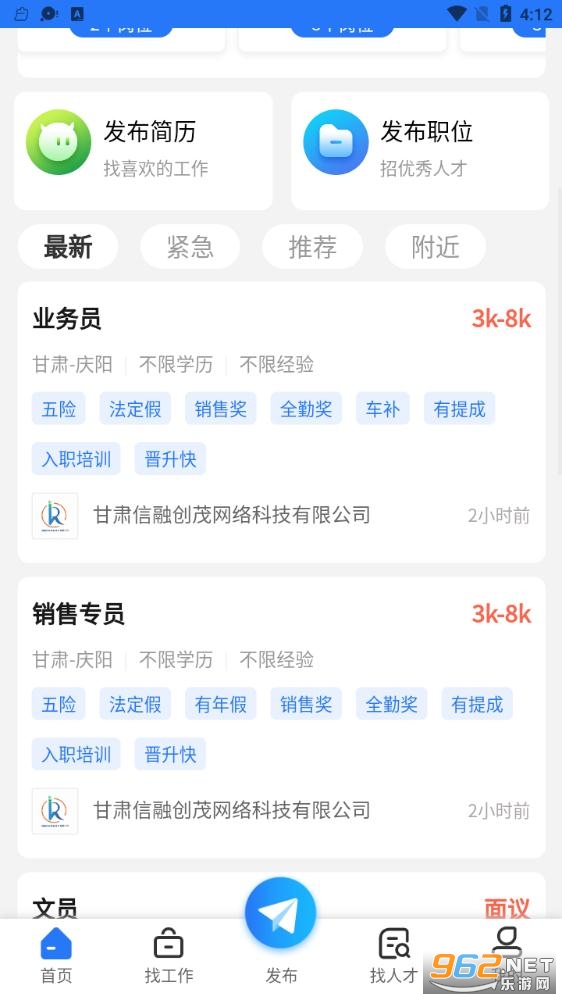 个人会员发布简历,让企业找到您的简历,畅快体验手机找工作的高效快捷。