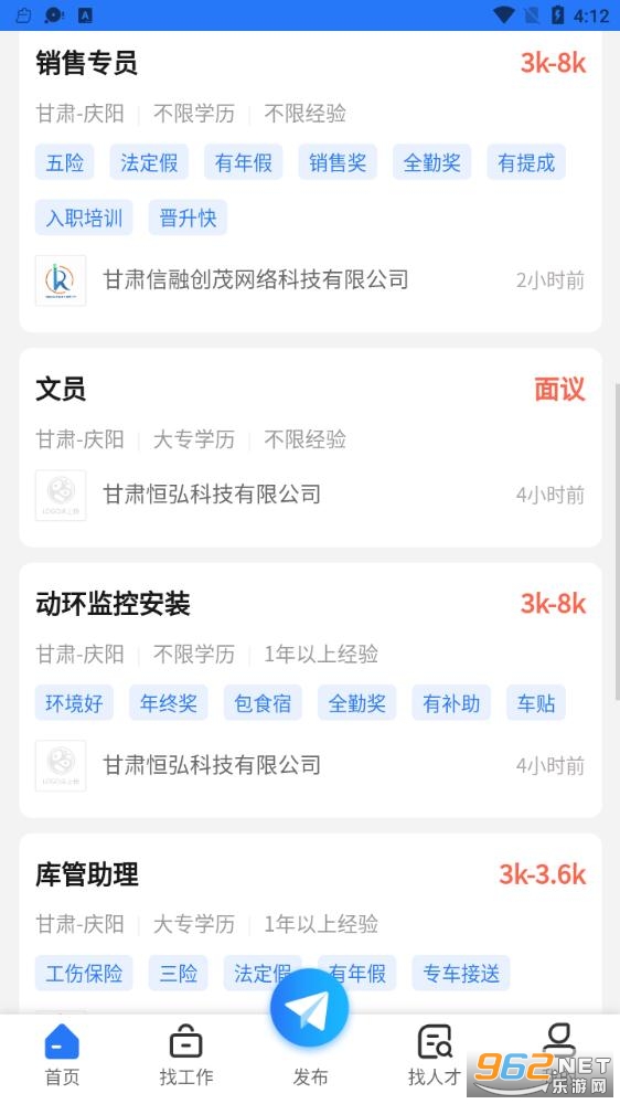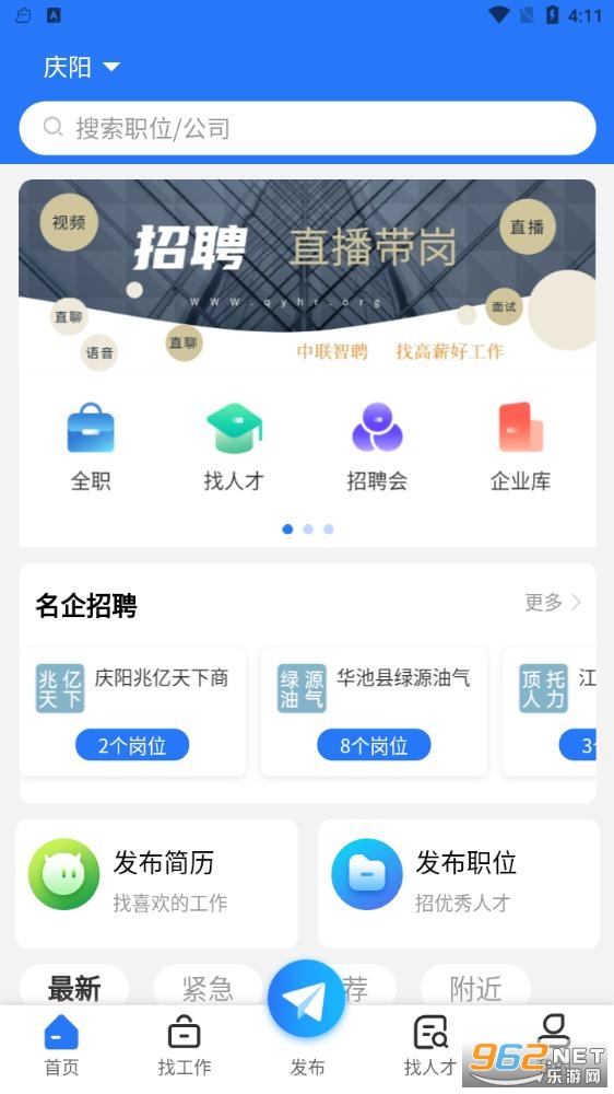 《庆阳人力资源网官方版》是一款非常给力的招聘软件,这里为用户提供最好最棒的服务平台,海量职位信息真实可靠,智能筛选职位快速帮你寻找合理的岗位,操作简单,功能强大,感兴趣的朋友还在等什么?欢迎来962下载体验试试吧!