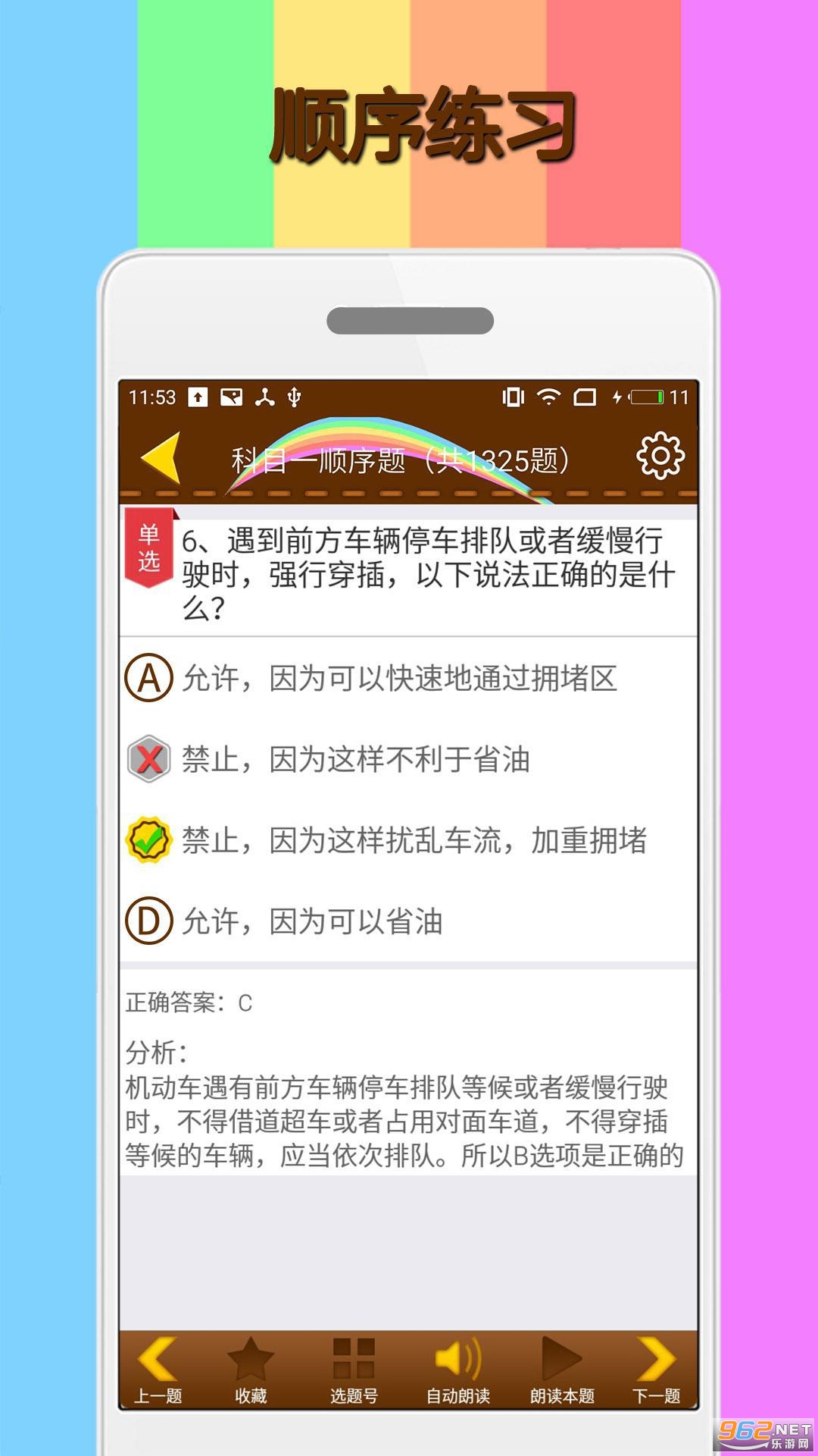 【语音朗读】具有语音朗读功能帮您声学记忆,带上耳机,在地铁、公交随时随地轻松学习,语音朗读功能是你考驾照学车的好助手,可以设置朗读速度,朗读语调,朗读音量大小和朗读人物(包括男声和女声)。