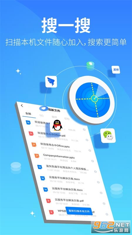 新增“文件雷达“功能,所有保存在手机本地的文件,都能被优云扫描并保存,文件搜索更方便
