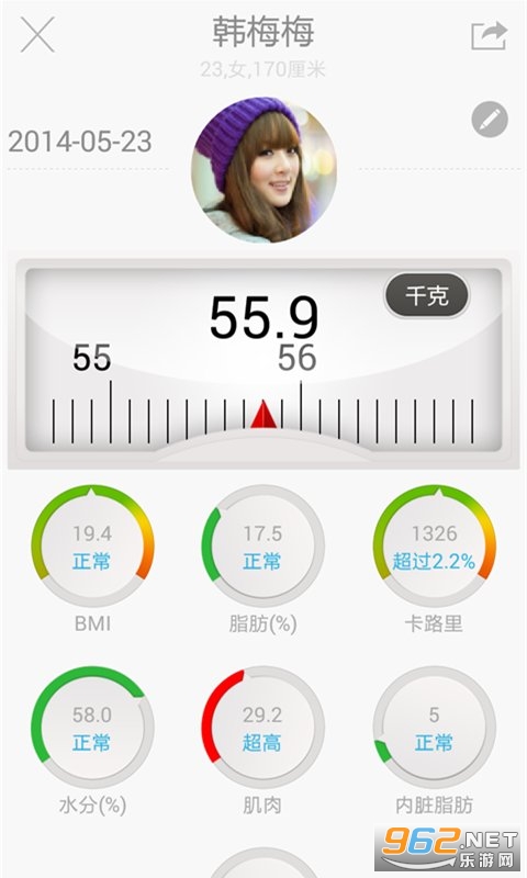 可以跟踪体重,BMI,体脂含量,水份含量,卡路里消耗,骨骼含量,肌肉含量,内脏脂肪等数据。