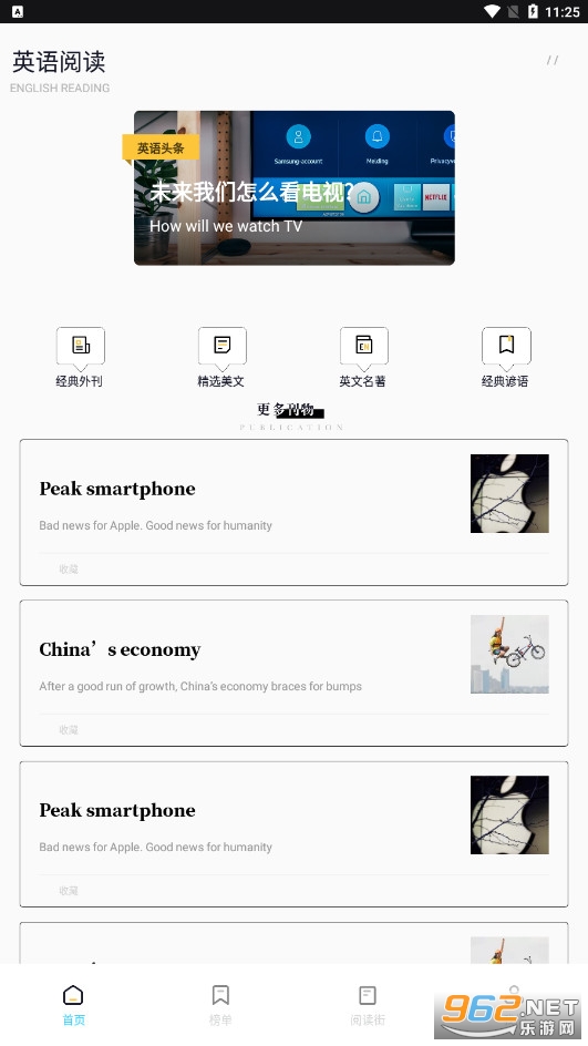 2.英语外刊阅读app中所有的刊物内容都是实时的为用户进行更新的,有海量超多的英文原版的内容可以提供给用户进行在线推荐,软件内容丰富。