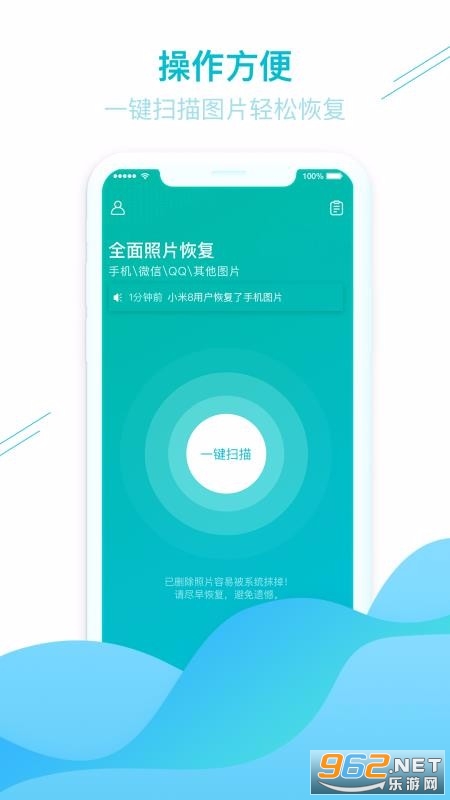 《照片图片找回安卓版》是一款非常好用的手机恢复软件,这款软件可以轻松恢复不小心删除的照片或者图片,而且是免费的,操作也方便,一键就能轻松恢复,而且拥有专业的客服提供在线咨询服务,感兴趣的小伙伴还在等什么?欢迎来962下载体验试试吧!