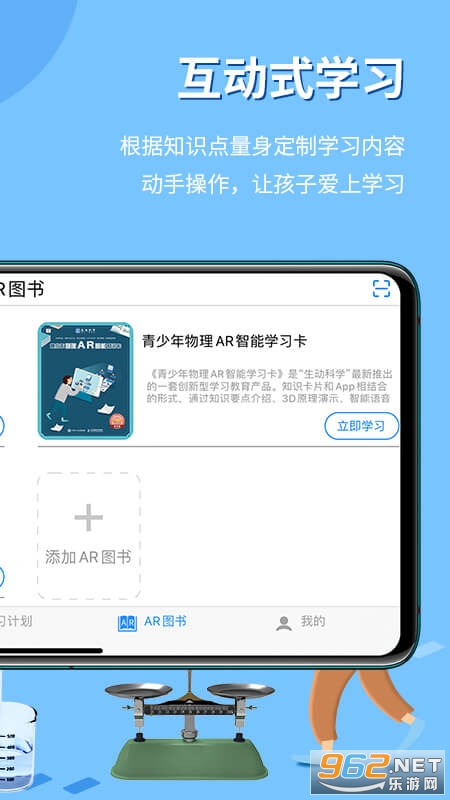 AR生动科学是一个基于AR(增强现实)技术的初中学习资源平台,包含初中数学、物理、化学、地理、生物五个学科,每个学科都结合课本梳理了上百个知识点,每个知识点都包含3D原理演示、语音讲解、操作互动、考试评测等多元化解析。