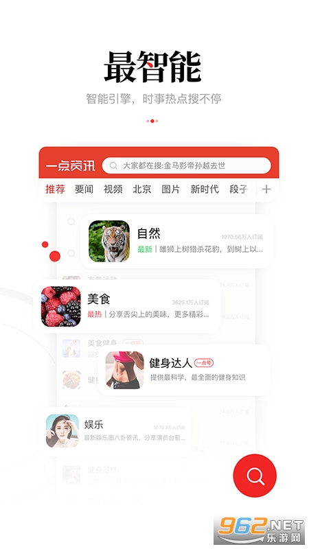 高度私人订制,妙不可言!任意两个人看到的新闻都不一样!你是关注美容变白瘦身穿衣搭配的小,还是刚要面临怀孕育儿早教的辣妈奶爸?你是关注身心健康的养生达人,还是喜欢刺激的钻研星座的二次元控?无论你是哪一类,一点资讯将智能分析你的爱好推荐你爱看的新闻!