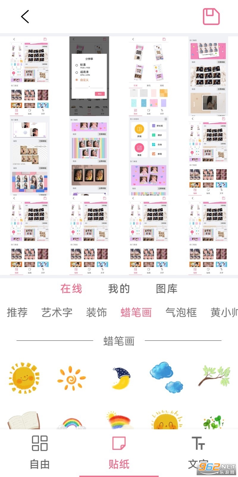 2、支持用户多种图片的拼接模式:20种自由拼接、精美模板拼接、各式贴纸等工具进行拼图;