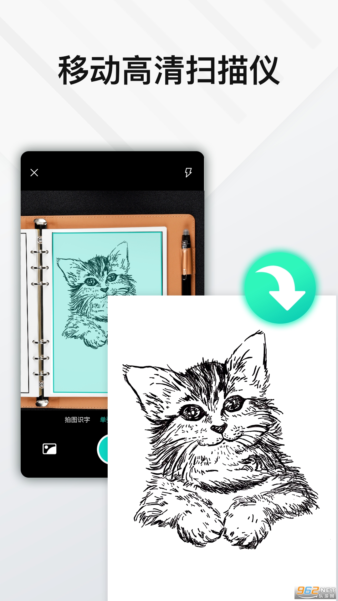 使用手机相机扫描拍照,自动识别文档边框,去除杂乱背景,生成高清图片,导出PDF文件。高品质扫描,多种图像处理模式,自动优化图片获取高质量的扫描件,媲美高性能扫描仪。