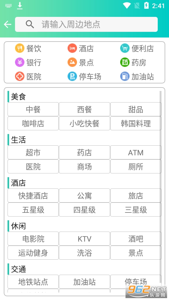 可以非常便捷的查询附近的餐厅,银行,医院,便利店等内容,支持地图POI快速检索,一键导航直达。