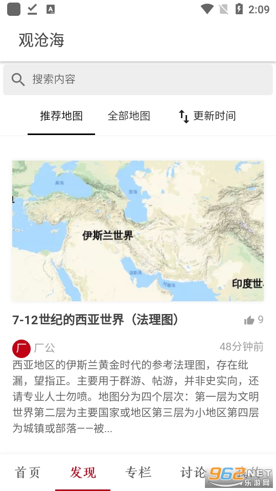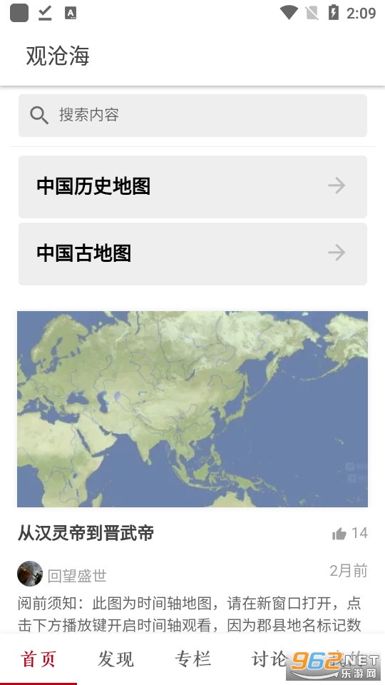观沧海是&12032;个知识地图制作分享平台,它将地图和文字结合,反映中国历史、军事、地理、文化等方面的知识,向用户提供地图协作分享服务。
