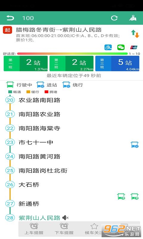 4.“车内舒适度”提示:候车界面车辆位置信息、车辆预到站时间一应俱全,更有全国首创“车内舒适度”提示,依据车内客流统计设备换算出车内舒适度指数,用红、黄、绿不同颜色显示,方便市民选择出行车辆。