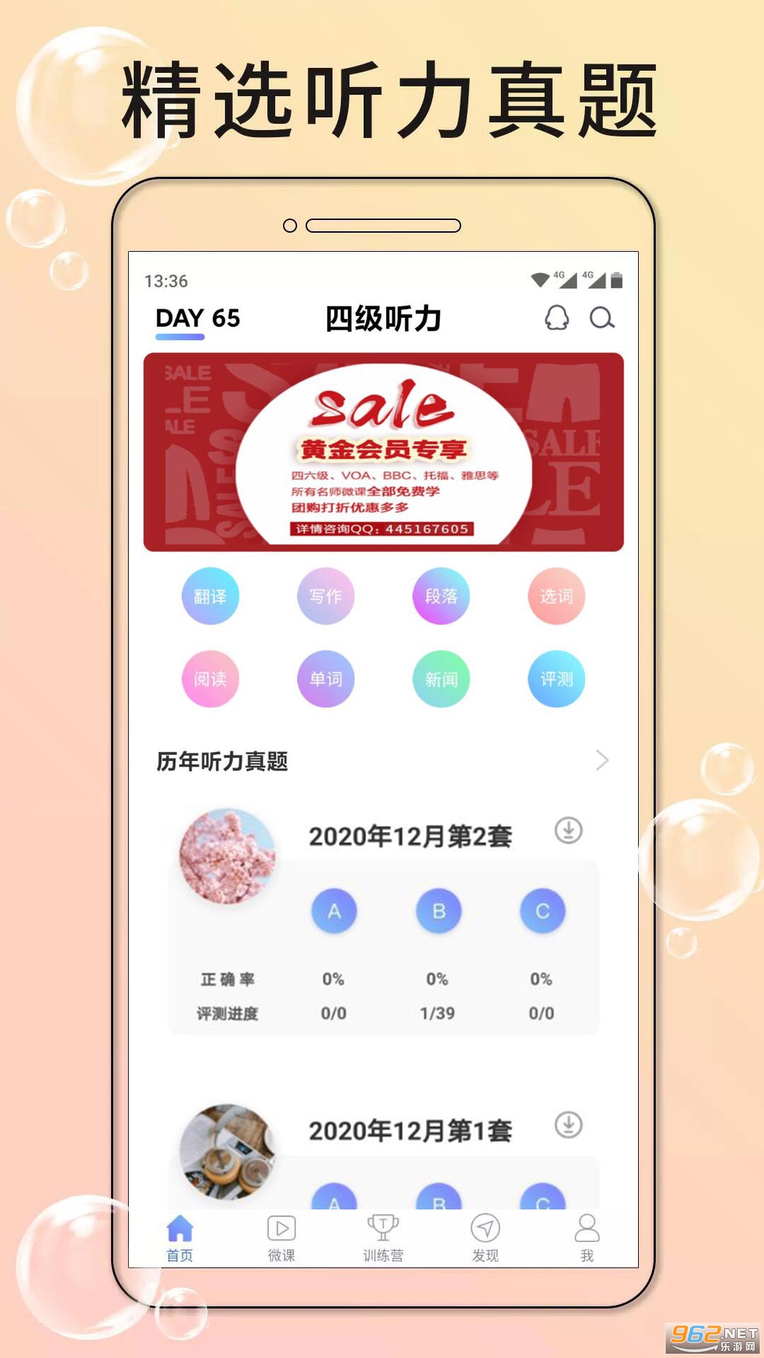 《英语四级听力app2026最新版》是一款专为大学英语四级考试打造的听力训练工具,内含四级真题和词汇。包括听力模拟练习,长短对话,复合式听写等国家四级考试包括的所有题型,让用户考前模拟训练,考试不怯场。