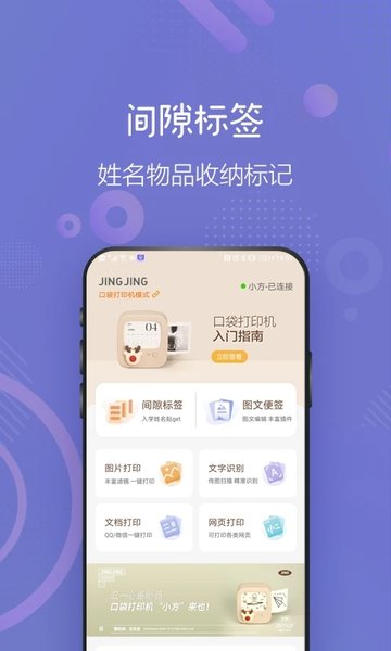 井井打印是一个适用于学习教育、日常生活等综合场景的APP,它可通过蓝牙连接井井学习打印机,实现手机操控打印机无墨打印,随身随行,装纸即打.欢迎各位下载使用.