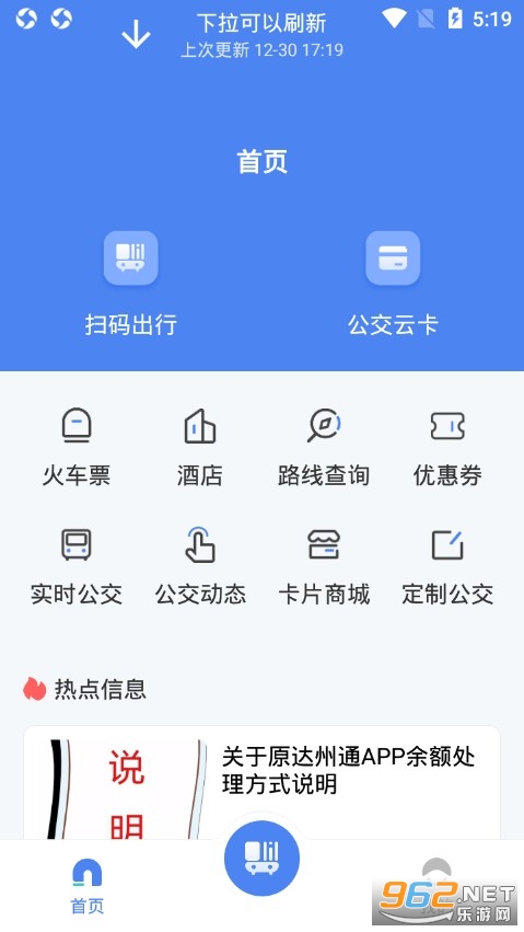 《达州一卡通app》是一款掌上公交出行软件,集成了公交卡、乘车二维码、公交卡充值、乘车信息、公交动态、路线查询等多种出行服务功能,有了这款软件以后在四川达州畅通无阻,便捷轻装出行,以后大家出门就不需要带零钱或者公交卡了,直接使用这款掌上公交。