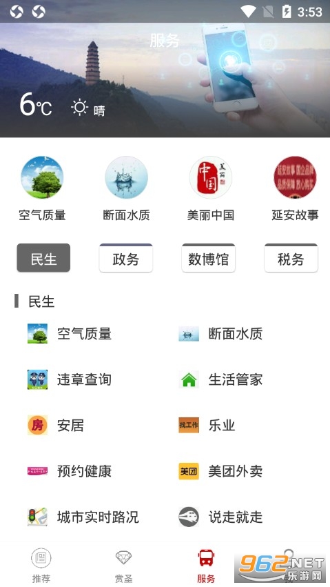 服务:学习数据库、政务服务、数字博物馆、民生服务、掌上税务、延安机场、圣地学府、延安党建、延职院、中延院、大陕北好招待等
