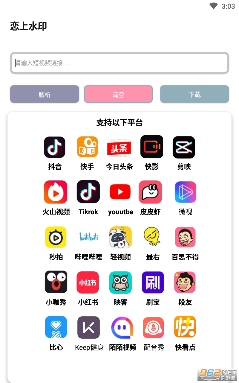 《恋上水印app》是一款功能丰富且用起来非常有趣的去水印的工具,小巧的体积不占用内存运行也十分的流畅,可以对各大平台的视频进行去水印然后下载的操作,感兴趣的亲们赶紧下载吧。