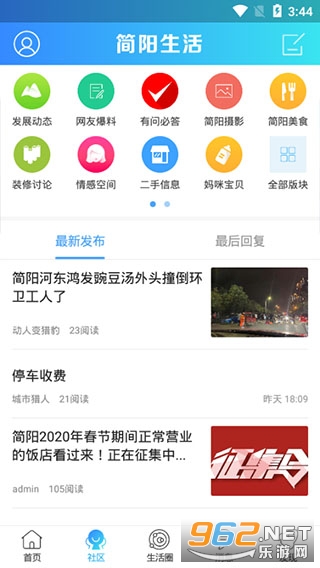 3、社区功能用于展示同城用户每天不定时发表的精彩图文动态;