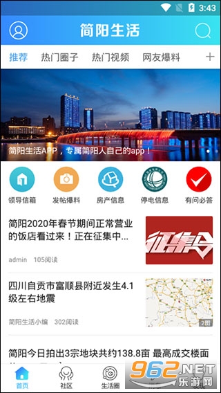 简阳生活官方APP,提供简阳新闻资讯、吃喝玩乐美食推荐、公交查询、房屋租售、招聘求职、同城交友等丰富功能的手机客户端。简阳生活花了2年时间打造了全简阳影响力最大的自媒体平台,总用户数已经超过50万。