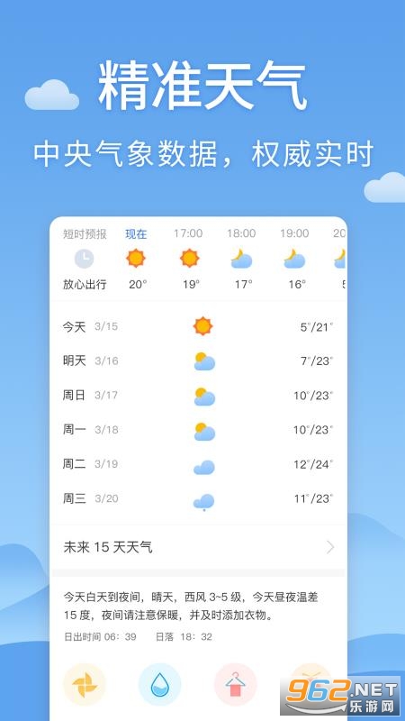 24小时天气预报——轻松查阅24小时内的天气变化,提早预防昼夜温差;
