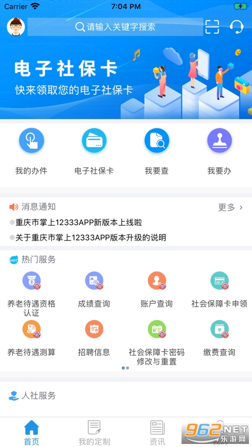 《重庆社保app》给用户们带来了一款掌上的社保app,让各位用户们可以通过这款重庆社保app打造出一款便民生活的社保平台,让各位用户们在这里开启掌上的社保查询,缴费等等,下面为大家提供重庆社保app下载!