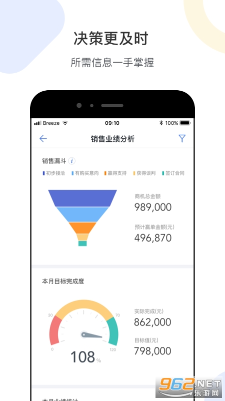 销售代表可以更方便及时地获取所需信息,更好地完成指定任务。减少您不必要的手工劳动,信息录入更准确全面,提高工作效率,并为管理者智能决策提供依托。与您的团队及时有效的沟通和协作,得到必要的支持和指导,满足客户的个性化需求,提高打单速度。