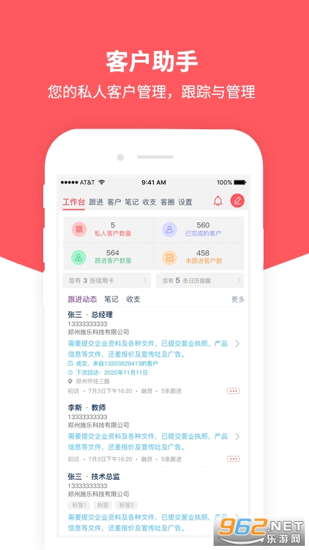 一款非常便捷的客户助手软件,你可以了解客户的情况来试试进行跟进,还可以生成对应的客户地图进行导航,规划路线。设置日历提醒,记录各种信息,推荐给有需要的用户。