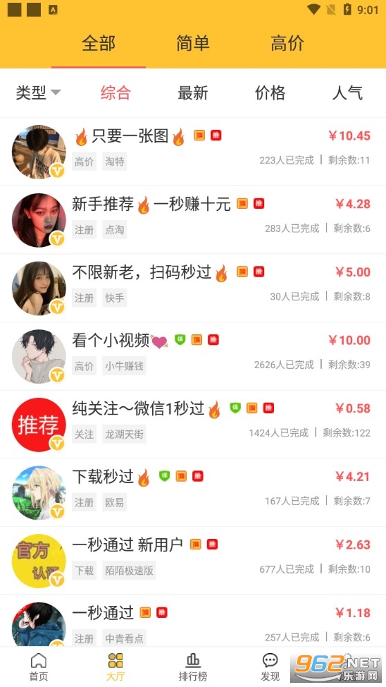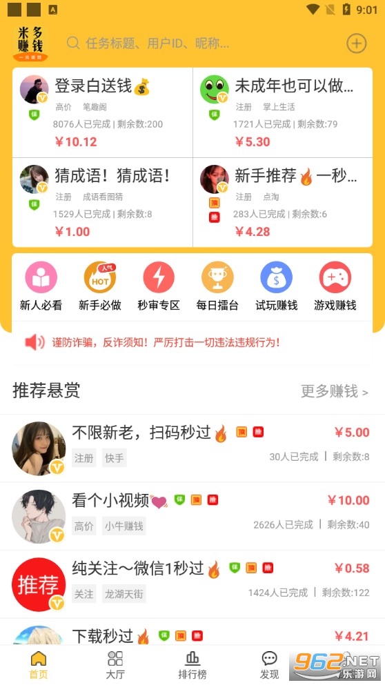 2、每日实时更新任务,任务类型多,一个小时可以轻松赚几十元;