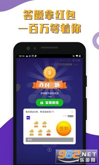 《百万题王app》是一款非常给力轻松的趣味答题学习软件,这里为用户提供最有趣的答题模式,游戏中题目涵盖各方面的趣味知识,答题的正确率越高奖励越好,提现也方便,感兴趣的朋友还在等什么?欢迎来962下载试试吧!