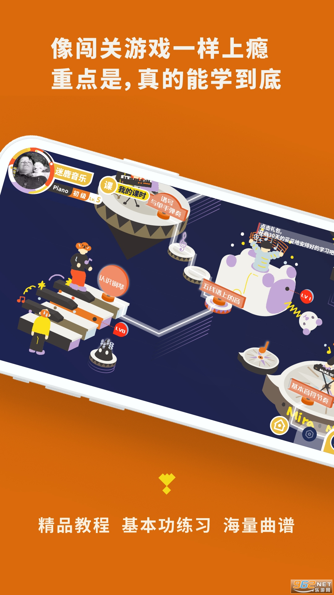 迷鹿音乐有吉他钢琴尤克里里课程啦,吉他包含了17个站点,136节课;尤克里里包含了12个站点,80多节课;流行钢琴包含了15个站点,120多节课。吉他钢琴尤克里里总练习歌曲超过600多首。
