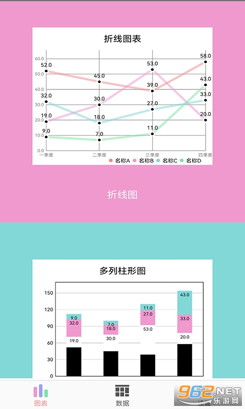 总体来说是一款非常不错的可以将数据直接生成对应表格的软件,柱状图,饼图或者是条形图等等,喜欢的亲们赶紧下载吧。