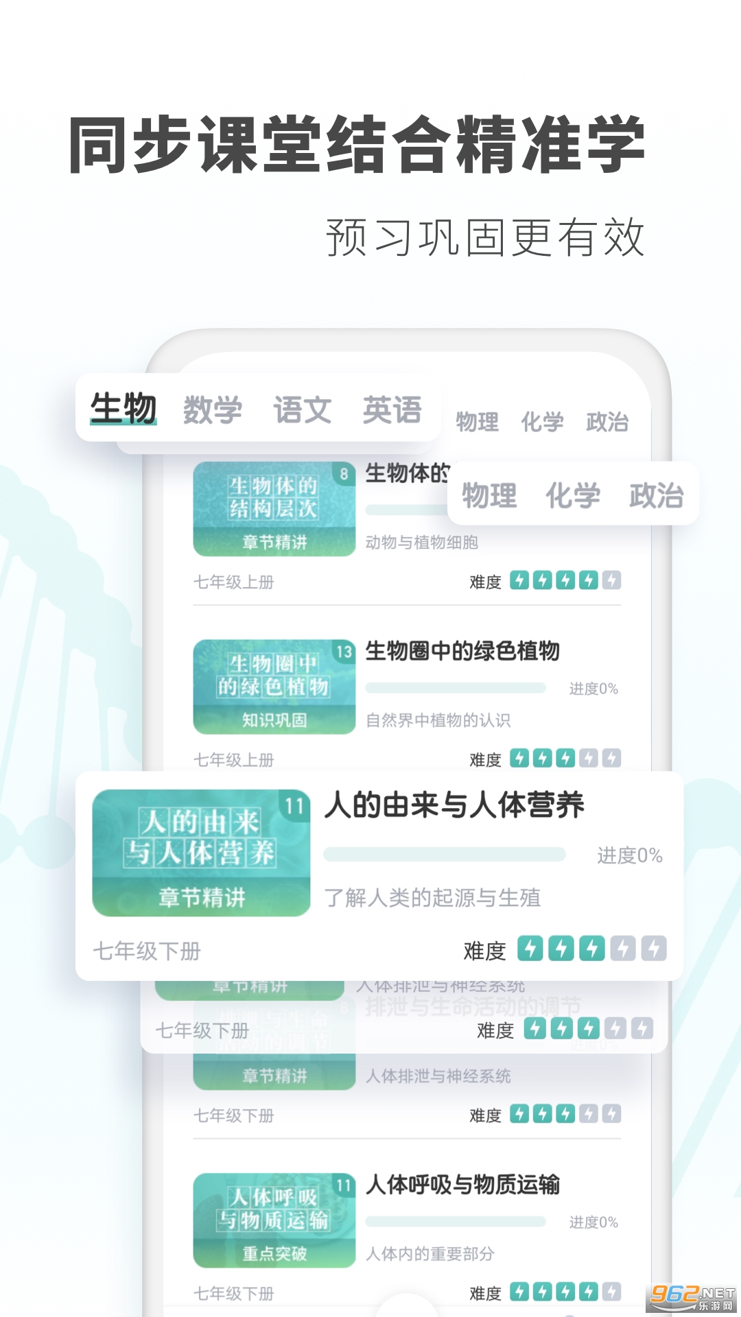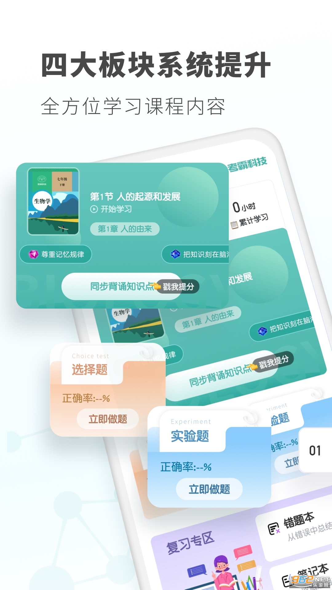 针对初中生物重难点知识点,提供高清讲解视频,不限次数观看!云端储存学习记录,多倍速播放,适应各种层次学生!