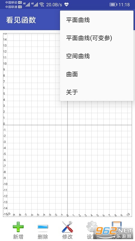 根据用户输入的一元函数绘制函数曲线,根据用户输入的二元函数绘制函数曲面,根据用户输入的带可变参数的函数绘制曲线,根据用户输入的带可变参数的函数绘制曲面,根据用户输入的方程绘制三维曲线。对于平面曲线,可以进行位移和缩放操作,可以同时绘制多个函数的曲线,每条曲线的颜色可以设置;对于曲面可以进行调整视角和观察空间;对于带可变参数的曲线和曲面,可以手动调节参数观察函数曲线或曲面的变化。支持幂函数、指数函数、对数函数、三角函数等所有初等函数。可以保存输入的函数,也可以重新加载保存的函数。