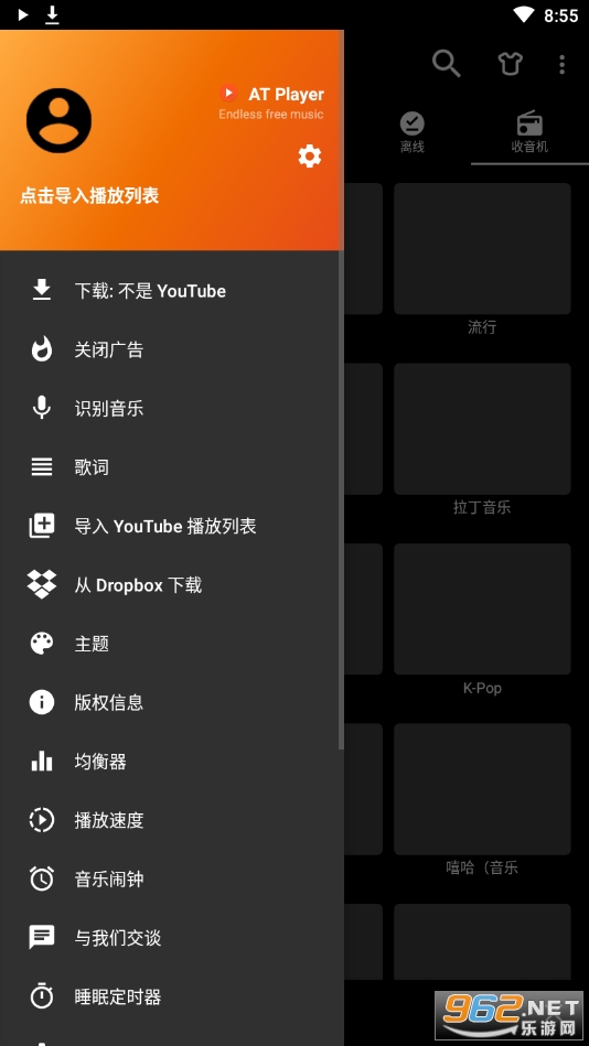 音乐下载器应用。MP3播放器。AT Player是一个巨大的歌曲档案库,有1000多首不同流派的歌曲。在这里,观众可以通过使用音频识别免费收听任何歌曲的音乐。它还允许你搜索你最喜欢的音乐,显示播放列表,支持你搜索专辑,歌曲,艺术家,混音,单曲,封面,调频广播,播客。此外,该应用程序还允许您从AT PLAY上收听或导入播放列表的公共播放列表。