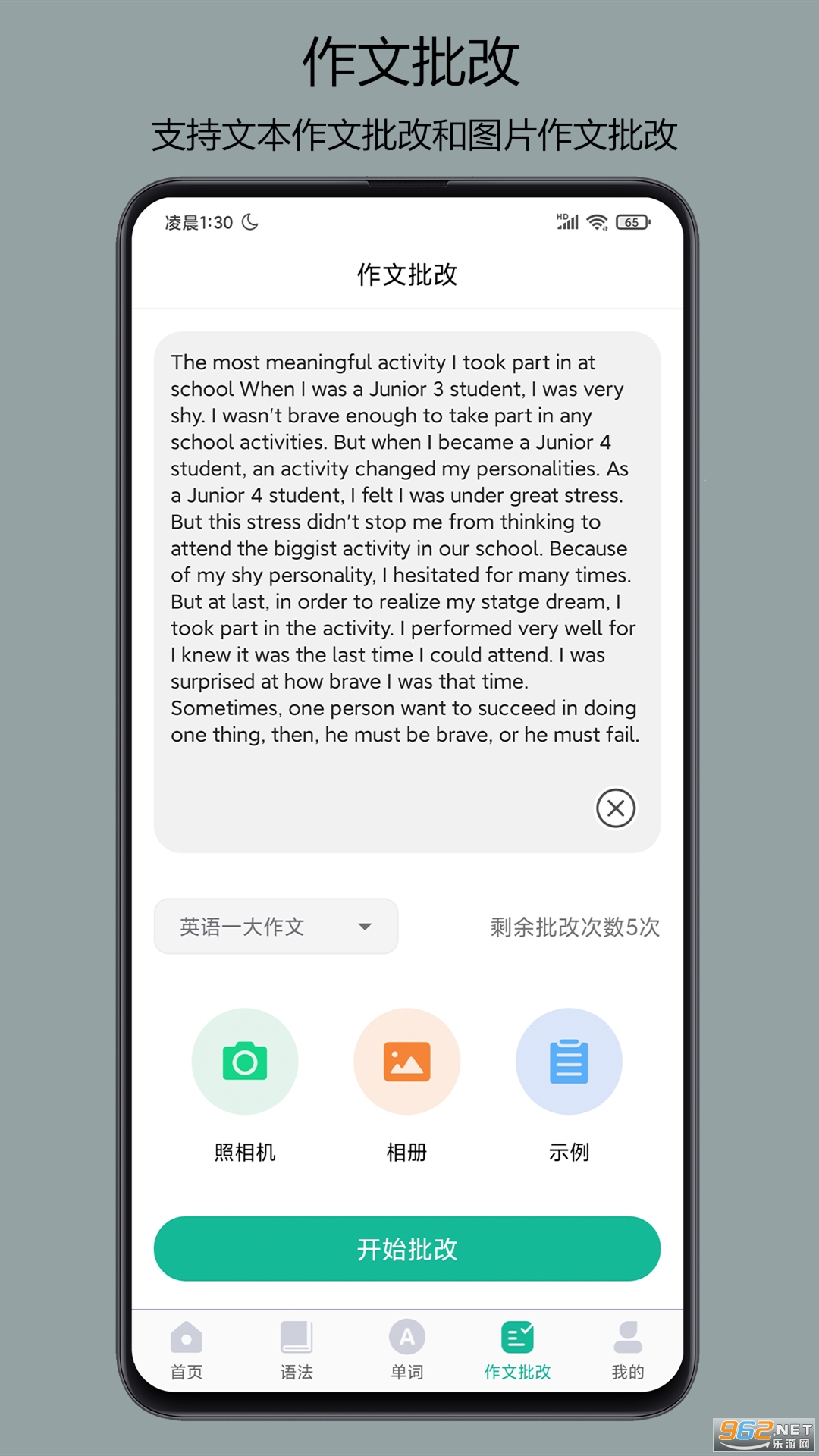 3.作文批改,支持文本作文批改,图片作文批改。