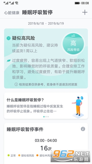 【连续检测】整晚连续测量血氧、心率,及时捕捉睡眠呼吸暂停风险。